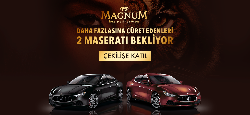 Magnum Classic, Badem, Beyaz, Antep Fıstıklı, Double Çikolata, Double Karadut&Böğürtlen, Double Fıstık Ezmesi, Tiramisu, Créme Brulee, Tarçın ve Portakal dondurma çubuklarındaki şifreyi kullandığınız taktirde Magnum Maserati çekilişi için 2 hak; Magnum Mini Classic-Badem-Beyaz, Mini Classic-Antep Fıstık- Fındık, Mini Classic, Mini Double Karadut&Böğürtlen-Çikolata Karamel, Mini Double Fıstık Ezmesi, Mini Kisses, Mini kış serisi dondurma çubuklarındaki şifre ise 1 hak kazandıracaktır. Bu Magnum çekilişine Unilever Sanayi ve Ticaret Türk A.Ş, U2 Tanıtım ve Promosyon Hizm. Tic. Ltd. Şti., Narkoz İletişim Hizmetleri Sanayi ve Ticaret A.Ş, ve 18 yaşından küçükler katılamaz. Katılmış olsalar dahi ikramiyeleri verilmez.